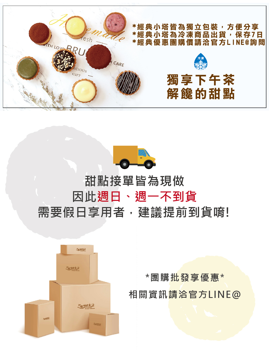 為避免影響甜點口感,建議常溫與低溫品項分開下單宅配,請您斟酌下單。