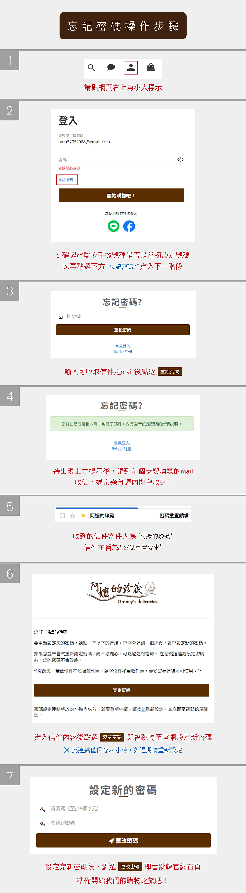 A. 由於某些信箱會有阻擋廣告信的功能,從我們系統自動寄出的信件有可能會被當成廣告信或垃圾信件處理,可先確認是否被列入垃圾信夾內,若於24小時內仍未收到,請使用Line@(ID: @ama520或來電(06-2705520、0938-978787)與客服人員聯繫。