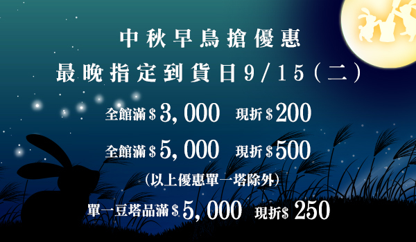 ▲ 全店單筆滿 $5,000 現折 $250 (單一豆塔除外)