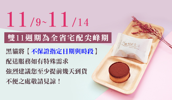 11/9~11/14 雙11週期為全省宅配尖峰期
