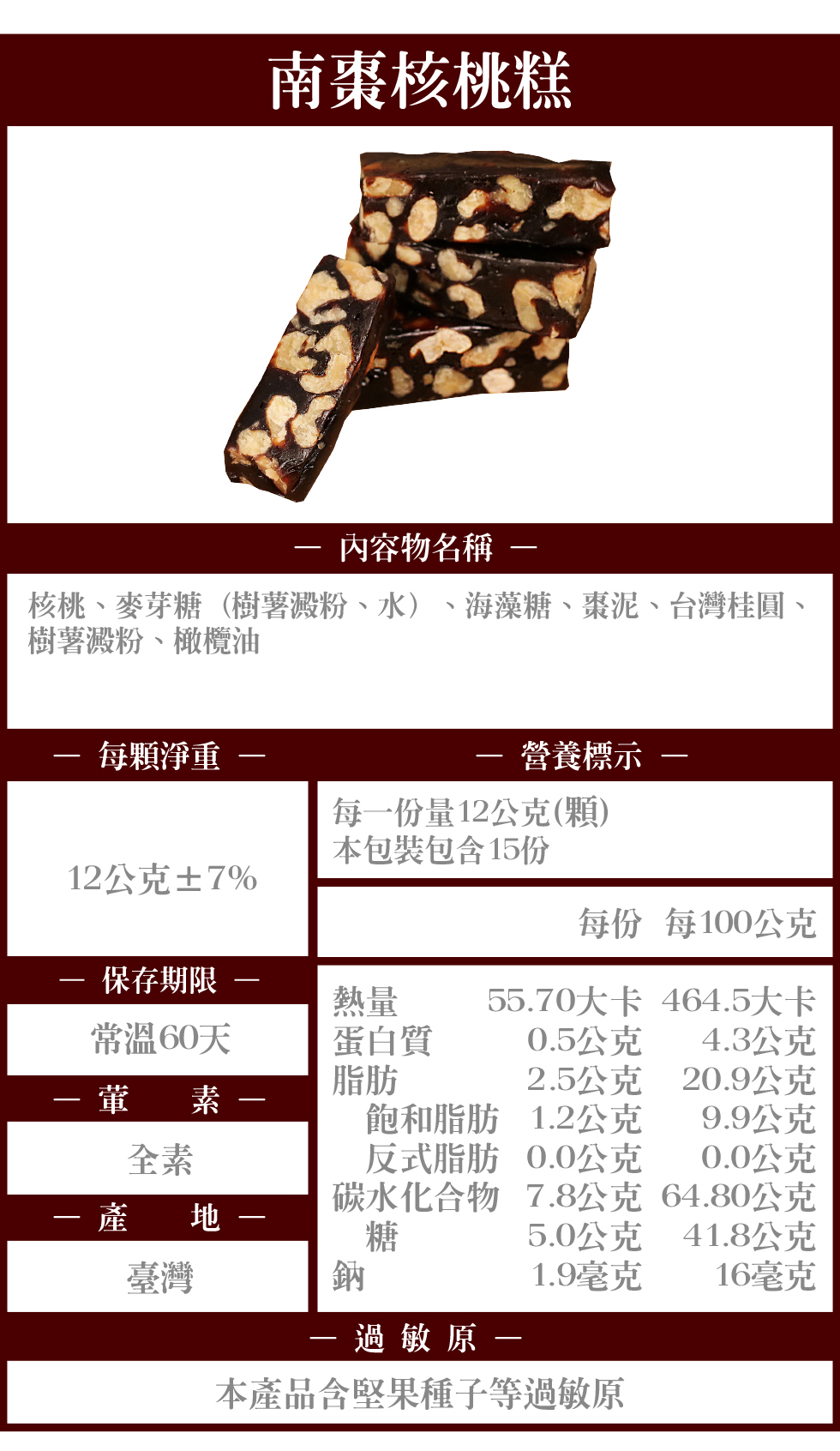 • 層次風味:甘醇棗香x桂圓甜韻x核桃酥脆,清爽不膩、軟Q不黏牙
