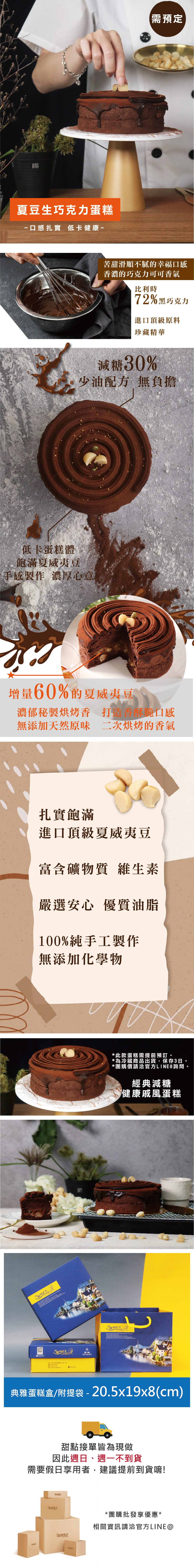 .品名:【減糖版】夏威夷豆生巧克力蛋糕 (6吋)
